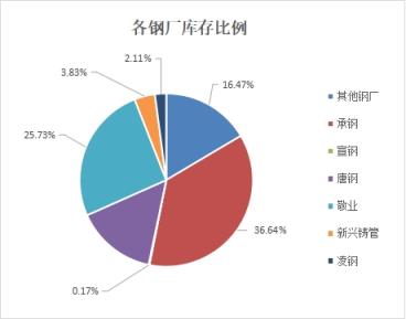 從各無縫宅男在线小视频無縫鋼管廠家比例來看,承鋼重回大哥位置,敬業次之仍有一定距離,唐鋼暫居第三,其他無縫宅男在线小视频無縫鋼管廠家緊隨其後,2672淩鋼分列五六幾乎並駕齊驅,宣鋼存量已經很小。