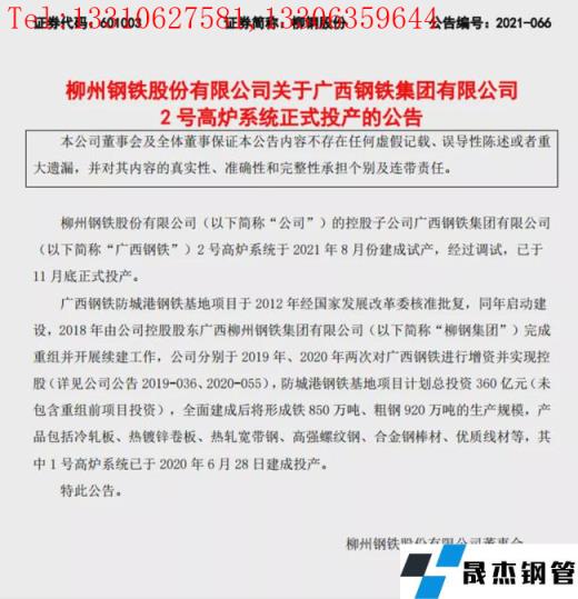 柳鋼股份12月7日晚間公告,控股子公司廣西鋼鐵集團有限公司2號高爐係統於2021年8月份建成試產,經過調試,已於11月底正式投產。