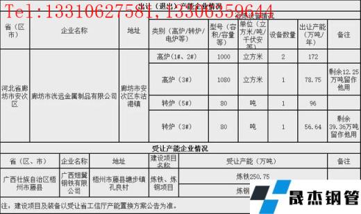 廊坊市洸遠金屬製品有限公司擬出讓(退出)1000m³高爐2座、1080m³高爐1座、80t轉爐2座設備給廣西翅冀鋼鐵有限公司,共計出讓煉鐵產能250.75萬噸,煉鋼產能152.64萬噸。