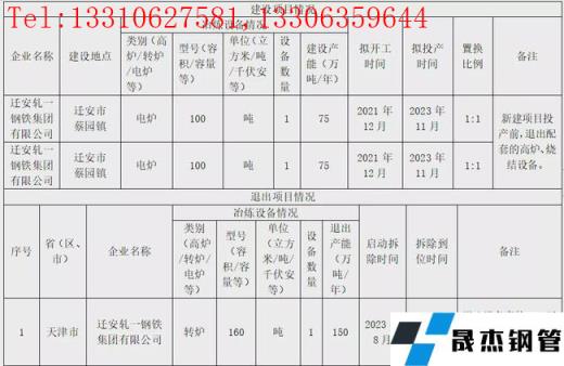 遷安軋一鋼鐵集團有限公司擬於2021年12月在遷安市蔡園鎮開工建設電爐100t電爐2座,產能150萬噸/年;所有項目擬於2023年11月投產。同時,遷安軋一鋼鐵集團有限公司退出160t轉爐1座,產能150萬噸/年,將於新建項目投產前拆除。