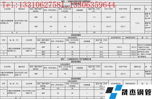 項目一為80t轉爐優化升級產能置換項目:內蒙古包鋼鋼聯集團有限公司分別擬於2022年7月與2023年2月在包頭市河西工業區包無縫鋼管廠內新建100t轉爐1座,產能115萬噸/年;100t電爐1座,產能75萬噸/年。共計新建煉鋼產能190萬噸。同時退出80t轉爐3座,產能252.6萬噸/年。所有項目預計2022年6月—2023年9月拆除。