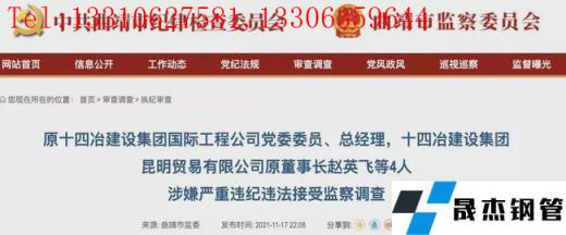 據曲靖市監委消息:原十四冶建設集團國際工程公司黨委委員、總經理,十四冶建設集團昆明貿易有限公司原董事長趙英飛涉嫌嚴重違紀違法,經雲南省監委指定曲靖市監委管轄,曲靖市監委指定會澤縣監委管轄,目前正在接受會澤縣監委監察調查。