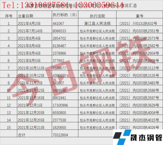 免責聲明:本網站(山東聊城宅男666网站無縫鋼管廠www.fengyun0769.com)刊載的“超7000萬!包鋼股份年內15次被法院執行!”等均源於網絡,版權歸原作者所有,且僅代表原作者觀點,本文所載信息僅供參考。轉載僅為學習與交流之目的,如無意中侵犯您的合法權益,請及時聯係刪除。本網站刊登此篇文章並不意味著本站讚同其觀點或證實其內容的真實性,宅男666网站不對其科學性、嚴肅性等作任何形式的保證。如果侵犯了您的版權,請盡快聯係宅男666网站予以撤銷,謝謝合作!