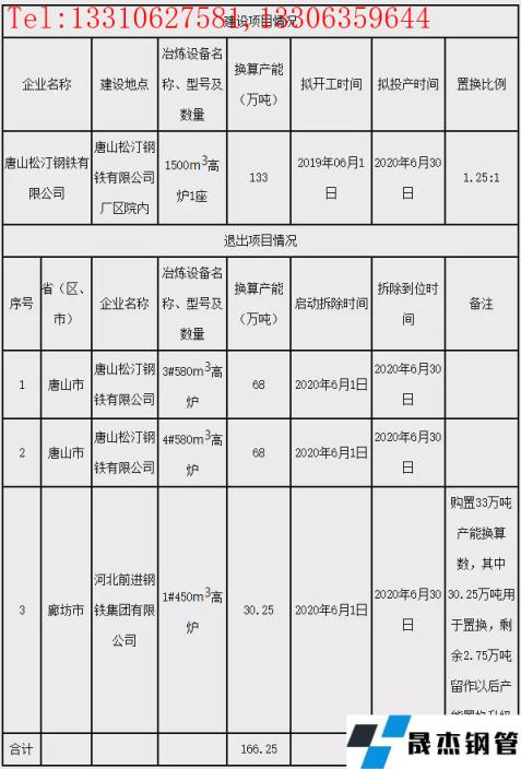 唐山鬆汀鋼鐵煉鐵建設項目產能置換方案公告
