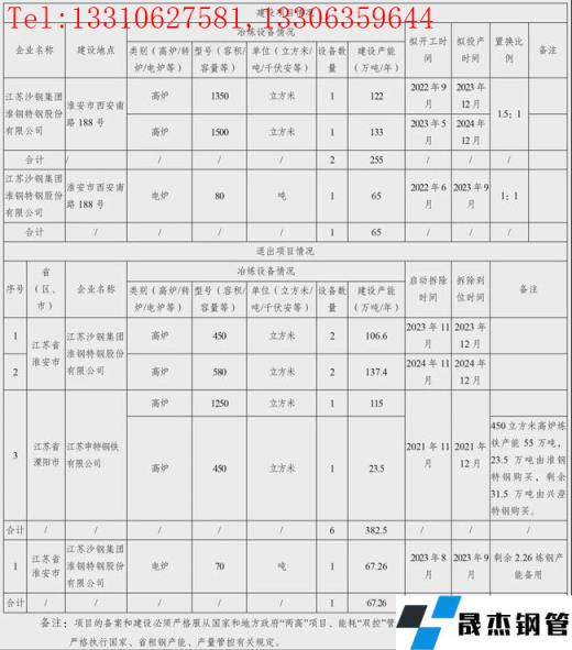 2022年1月6日,江蘇省工信廳發布沙鋼集團淮鋼特鋼高爐電爐綠色升級改造項目產能置換方案。方案表明,江蘇沙鋼集團淮鋼特鋼股份有限公司擬於2022年6月-2023年5月新建1350m³高爐1座、1500m³高爐1座和80t電爐1座,共計新增煉鐵產能255萬噸/年,煉鋼產能65萬噸/年。所有項目預計2023年9月-2024年12月投產。