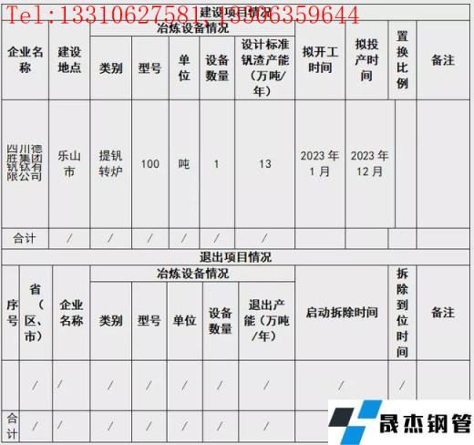 12月24日,四川省經信廳發布四川德勝集團釩鈦有限公司提釩轉爐建設項目產能置換方案。方案表明,四川德勝集團釩鈦有限公司擬於2023年1月在樂山市新建100t提釩轉爐1座,產能13萬噸/年,預計於2023年12月投產。