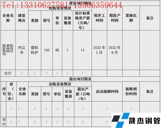 成渝釩鈦科技有限公司提釩轉爐建設項目產能置換方案