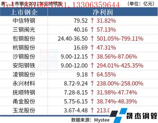 免責聲明:本網站(山東聊城宅男666网站無縫鋼管廠www.fengyun0769.com)刊載的“2021年鋼企利潤創新高,中信特鋼實現淨利近80億”等均源於網絡,版權歸原作者所有,且僅代表原作者觀點,本文所載信息僅供參考。轉載僅為學習與交流之目的,如無意中侵犯您的合法權益,請及時聯係刪除。本網站刊登此篇文章並不意味著本站讚同其觀點或證實其內容的真實性,宅男666网站不對其科學性、嚴肅性等作任何形式的保證。如果侵犯了您的版權,請盡快聯係宅男666网站予以撤銷,謝謝合作!