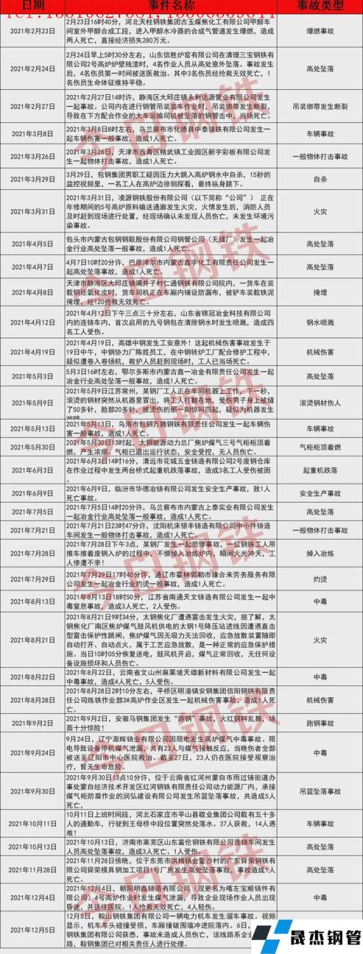 當前安全生產工作正處於關鍵時期,鋼鐵企業要嚴防安全風險因素的產生。回顧2021年小編將一些具有代表性的安全事故案例匯編如下: