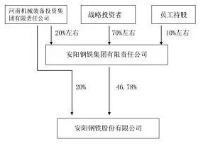 根據早前安鋼集團混改方案:先將安鋼集團100%股權評估後作價,出資至河南省國資委全資的河南機械裝備投資集團,同時將安陽鋼鐵20%股權無償劃轉到河南裝投集團;而後依托河南裝投集團在產權交易所公開掛牌並采取綜合評標方式確定一名戰略投資者,轉讓安鋼集團80%股權;戰略投資者對安鋼集團進行增資擴股,並實施員工持股等中長期激勵。