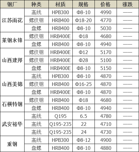 今日鋼廠指導價格穩中調整,原料價格略有下降,然近期連續上漲,冬儲季貿易商冬儲意願變弱,臨近春節,下遊需求不高,市場成交表現不佳,廠商多穩價去庫。預計短期鋼廠價格持穩偏弱。