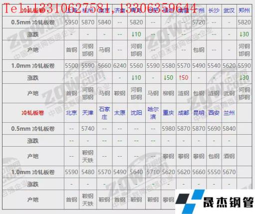 全國23個主要市場1.0mm 冷軋板卷平均價格5614元/噸,較上個交易日下調2元/噸。
