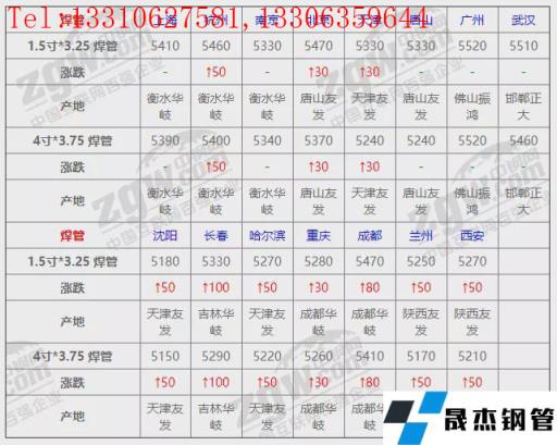 全國15個主要市場4寸*3.75 焊管平均價格5311元/噸,較上個交易日上調34元/噸。