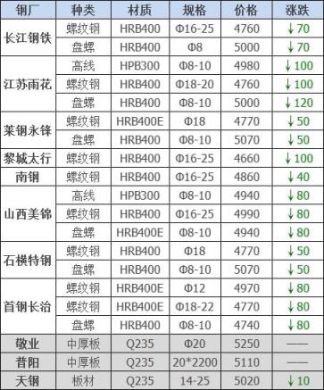 今日型、特鋼共8家宅男视频官网調價發布,其中:
