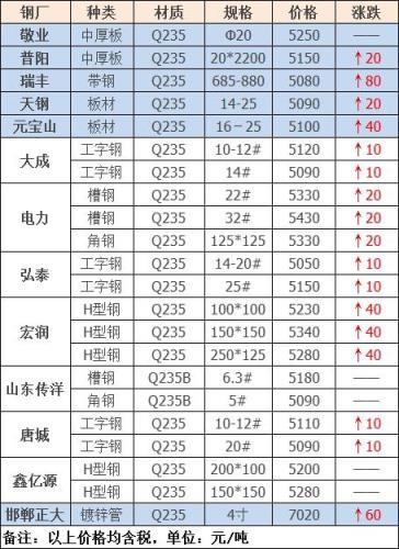 今日板、型、管材共13家宅男视频官网調價發布,其中: