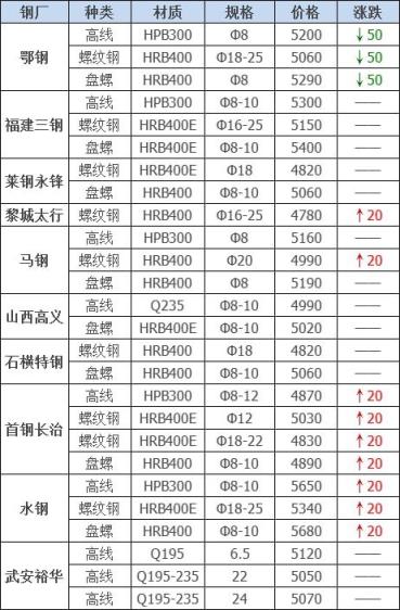 今日建材共12家宅男视频官网調價發布,其中: