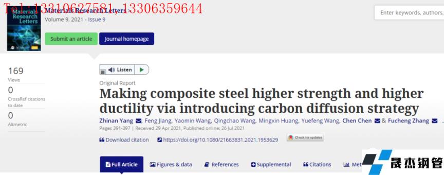 在本研究中,燕山大學提供了一種新的元素擴散策略,即輕元素(如碳)的長程擴散。與初始整體馬氏體鋼相比,該策略不會降低每一層的機械性能,並提高複合馬氏體鋼的強度和延展性。相關研究成果以題“Making composite steel higher strength and higher ductility via introducing carbon diffusion strategy”發表在國際著名期刊Materials Research Letters上。