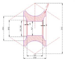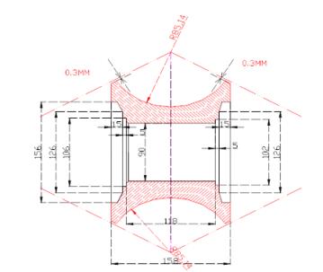 2) 張減輥 :二種型式,三輥在打開到圓時,輥縫分別為0.6mm(用於精軋機架加工)和3.4mm(用於工作機架加工),其圖見孔型設計部分。