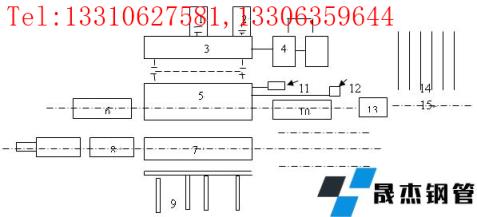 2 除鱗機:主要由除鱗箱、除鱗環組成,除鱗環上均勻布置10~15個噴嘴。除鱗時高壓水壓力18MP,作用是除去宅男在线小视频鋼管表麵氧化皮。