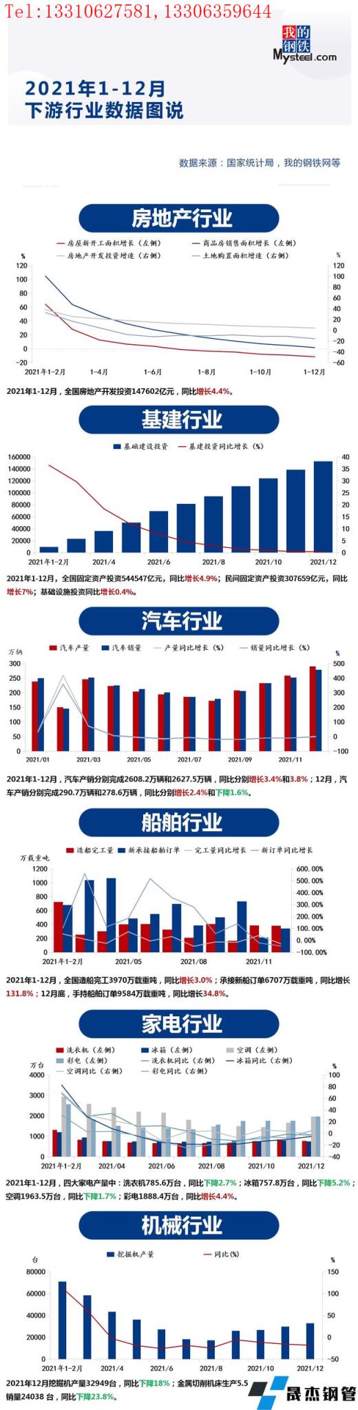 匯總了2021年1-12月部分下遊用鋼行業的運行情況。