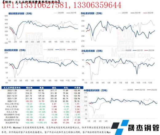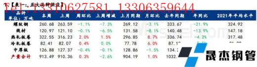 本周五大品種周消費量降幅突出,主要原因在於建材品種庫存增幅突出,但供應減量有限;而板材品種供應和庫存均未有明顯變化,因此整體消費受建材品種影響出現大幅下降。從下遊消費來看,節前最後一周,全國大麵積雨雪天氣來襲,以及員工停休放假,需求基本停滯。