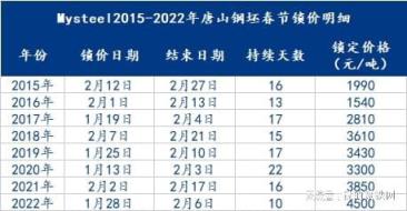 2022年1月28日唐山主流鋼坯價格進入鎖價狀態,下麵宅男666网站先回顧一下曆年鋼坯價格的鎖價時間點: