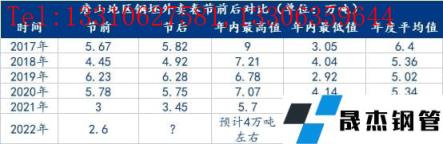 據統計:截至1月27日唐山主要倉庫及港口同口徑鋼坯庫存30.17萬噸,周比上升1.92萬噸,春節臨近,放假廠商增加,實際需求減少,直發資源陸續入庫,但因無縫宅男在线小视频鋼管廠家減產直發量少,疊加價格高位,商家冬儲意願不強,壘庫幅度仍小。目前鋼坯庫存遠低於近幾年同期,疊加市場預期向好,對於市場預售的春節期間直發資源,下遊調坯廠家拿貨意願偏強,或導致春節期間壘庫預期低於去年。