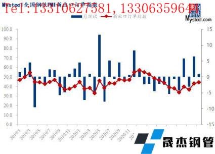 1月份全國鋼鐵行業新出口訂單指數44.3,較12月份回升0.9個百分點,不過仍繼續處於榮枯線下方。海關總署數據顯示,2021年,我國宅男在线小视频無縫鋼管累計出口量6689.5萬噸,同比增長24.6%;宅男在线小视频無縫鋼管累計進口量1426.8萬噸,同比下降29.5%。