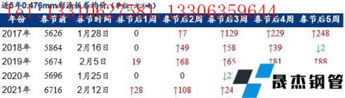 小編匯總近5年春節後四周彩塗板卷均價變化情況,以供參考。
