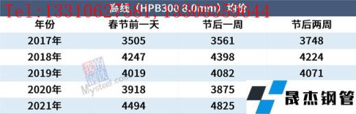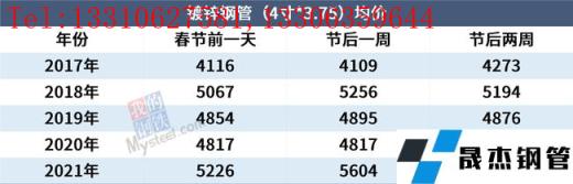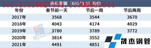 小編匯總近5年春節後兩周全國主要城市13大品種宅男在线小视频無縫鋼管均價走勢,以供參考。