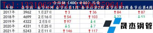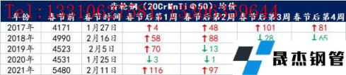 小編匯總近5年春節後四周優特鋼各品種均價變化情況,以供參考。