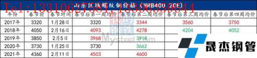 附:近五年山東建築宅男在线小视频無縫鋼管春節均價走勢:
