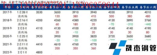 筆者回顧了近5年西南區域各主要建築宅男在线小视频無縫鋼管市場價格,通過對節後六周價格變化的對比得出,除2020年春節後受公共衛生事件影響,其餘時間節後前兩周基本以“開門紅”的上漲行情為主。
