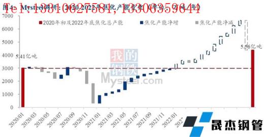 截至2021年1月21日,據調研統計,到2022年底總焦化產能預計將達到5.54億噸/年,將高於2021年底的5.4億噸/年,年增幅2.9%。