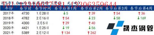 小編匯總近5年春節後四周冷軋板卷均價變化情況,以供參考。