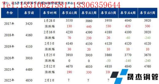 筆者整理了2017-2022年春節後5周重慶市場主要建材價格和庫存情況,由此可見除2020年因公共衛生事件影響使得價格回落,其他幾年重慶市場節後都是上漲行情,而庫存方麵對比節前普遍增加,高峰時期基本出現節後3周和4周,今年受限產因素影響疊加短流程無縫宅男在线小视频鋼管廠家提前檢修,節後增量或不及預期。