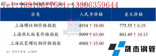 分地區方麵,上海螺紋鋼價格指數4934,上漲38.0;上海熱軋板卷價格指數5099,上漲63.0。(單位:元/噸)