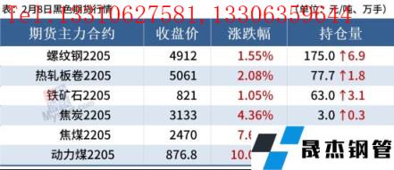 熱軋板卷:2月8日,全國24個主要城市4.75mm熱軋板卷均價5075元/噸,較上個交易日價格上漲64元/噸。目前在冬奧會限產背景下,產量繼續小幅回落,隨著各類企業的複工複產以及消費旺季的即將到來,需求或將逐漸好轉,市場情緒較為樂觀,預計9日熱軋板卷價格或將繼續上漲。