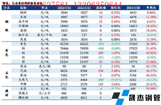 免責聲明:本網站(山東聊城宅男666网站無縫鋼管廠www.fengyun0769.com)刊載的“大宗原材料價格周報(1.24-1.28)”等均源於網絡,版權歸原作者所有,且僅代表原作者觀點,本文所載信息僅供參考。轉載僅為學習與交流之目的,如無意中侵犯您的合法權益,請及時聯係刪除。本網站刊登此篇文章並不意味著本站讚同其觀點或證實其內容的真實性,宅男666网站不對其科學性、嚴肅性等作任何形式的保證。如果侵犯了您的版權,請盡快聯係宅男666网站予以撤銷,謝謝合作!