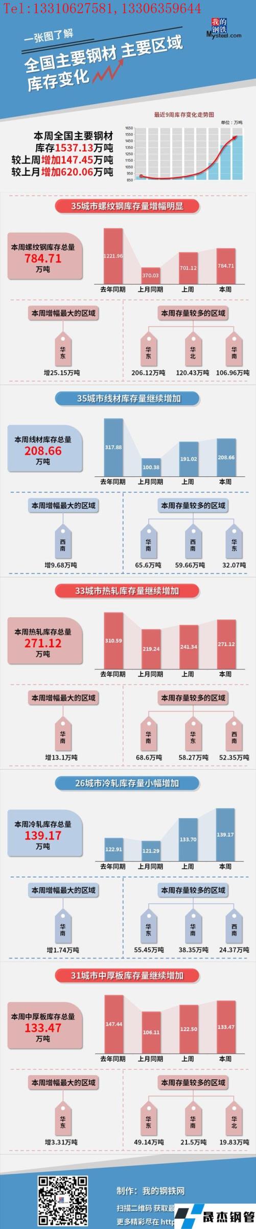 本周,全國主要宅男在线小视频無縫鋼管社會庫存1537.13萬噸,較上周增加147.45萬噸,較上月增加620.06萬噸;螺紋鋼庫存總量784.71萬噸。