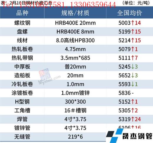 建築宅男在线小视频無縫鋼管:2月10日,全國31個主要城市20mm三級抗震螺紋鋼均價5003元/噸,較上個交易日上漲14元/噸。本周建材產量受春節影響小幅回落;廠庫、社庫大幅增加,表觀消費小幅上升。短期來看,目前市場實際需求並未啟動,現貨價格多受情緒麵驅動上漲,支撐力有限。因此預計短期現貨市場在情緒麵驅動下價格仍有拉高的可能。
