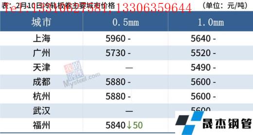 冷軋板卷:2月10日,全國24個主要城市1.0mm冷卷均價5593元/噸,較上個交易日下跌1元/噸。今日黑色係期貨盤麵整體呈低開高走的態勢,在期貨盤麵的影響下,午後市場詢單人數明顯增加,但由於下遊客戶觀望情緒較為濃厚,今日整體成交一般。庫存方麵,據不完全統計,現冷軋無縫宅男在线小视频鋼管廠家庫存43.71萬噸,周環比增加0.5萬噸,社會庫存139.17萬噸,周環比增加5.47萬噸,周消費量67.89萬噸,環比減少1.26萬噸。綜合來看,故預計11日國內冷軋板卷價格或將震蕩運行。
