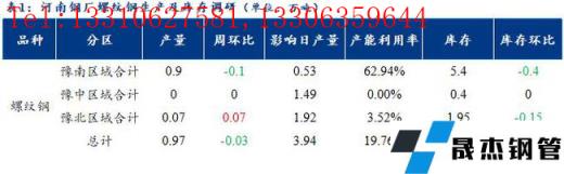 1、調研數據顯示,統計的河南地區10家建築宅男在线小视频無縫鋼管樣本無縫宅男在线小视频鋼管廠家中,河南省建材無縫宅男在线小视频鋼管廠家螺紋鋼日產量0.97萬噸;檢修/限產影響建材日產量為3.94萬噸,產能利用率為19.76%,較上周下降0.61%。
