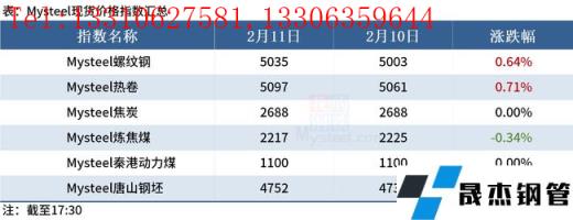 ◎ 2月11日,唐山遷安地區普方坯資源出廠含稅上調50,報4740元。