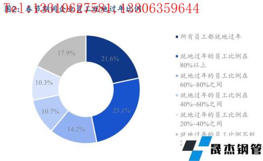 去年各地對“就地過年”政策響應較為積極,春節期間員工就地過年比例較高。今年春節期間員工就地過年比例達80%以上的企業占調研樣本比例達到46.8%,同時就地過年的員工比例不到20%的企業占比17.9%。