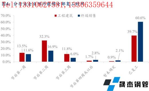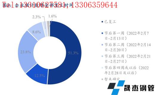 分行業來看,終端銷售樣本企業中,60.6%的企業目前已經完全複工,節後第二周內能夠複工的樣本企業占比可以達到89.1%,主要由於今年節前冬儲備貨情況整體較少,節後開門紅的行情走勢下,很多企業提前複工,積極入市詢價采購,以爭取利潤最大化。工程建築樣本企業中,39.7%的企業目前已經完成複工,節後第二周內能夠複工的樣本企業占比可以達到85.6%,整體進度情況也要好於往年同期水平。僅0.9%的工程建築企業和2.1%的終端銷售企業暫未有明確的複工時間,主要是受疫情以及冬奧會的影響。