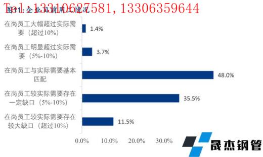 據調研,目前企業在崗員工人數與實際需求基本匹配的占比為48.0%,35.5%的企業目前在崗員工人數與實際需求相比存在少量的缺口,46.6%的企業在未來一段時間內有增加用工人數的計劃,由此可見未來一段時間內行業用工需求依然較大,僅僅隻有5.1%的企業未在崗員工人數超過實際需求,預計未來一段時間會有少量的人員裁減計劃。