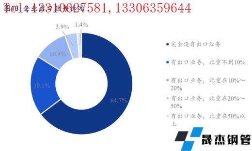 據調研,35.5%的樣本企業有出口業務,出口業務比重大多集中在20%以內。40.9%的企業出口訂單量較去年同期比基本持平,43.6%的企業出口訂單量同比有增長,15.5%的企業出口訂單同比有下降,主要是受全球疫情,以及中美貿易摩擦的影響。36.5%的企業出口價格較去年同期比基本持平,53.6%的企業出口價格同比有上漲,9.9%的企業出口價格同比出現下降。43.1%的企業出口量較去年同期比基本持平,49.7%的企業出口量同比有增長,主要是產品的類別和客戶都有增加,7.2%的企業出口量同比有所下滑,主要是受外幣貶值以及疫情影響下運輸成本提高的個影響。