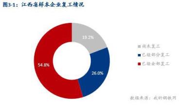 據調研,目前已全麵複工樣本企業占比達到54.8%,尚未複工的樣本企業占比19.2%。
