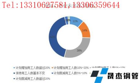 4、樣本中企業員工穩定性相對較高,54.15%的企業有計劃增加用工人數,表明貿易流通和生產製造行業生產經營情況持續向好。僅3.11%的企業在崗員工超過實際需要,3.89%的樣本企業有小幅裁員計劃。